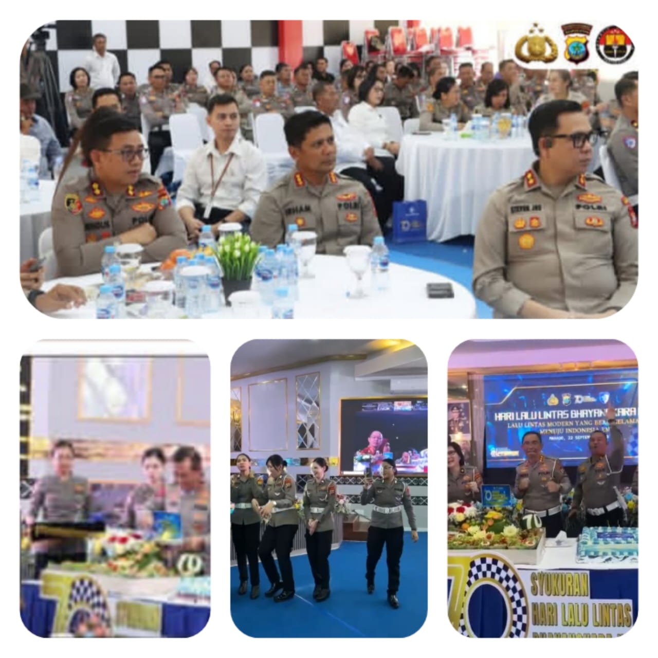 Syukuran berlangsung hangat dengan diisi doa bersama, pemotongan tumpeng, serta penyerahan penghargaan simbolis kepada personel lalu lintas berprestasi. Tampak hadir sejumlah pejabat utama Polda Sulut, para Kapolres jajaran, serta tamu undangan dari berbagai instansi.